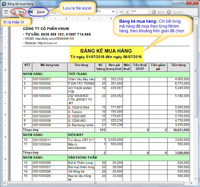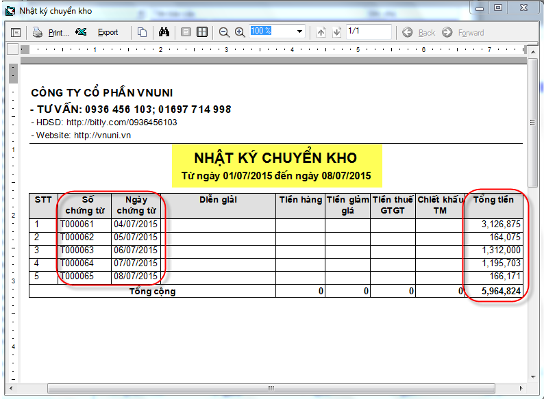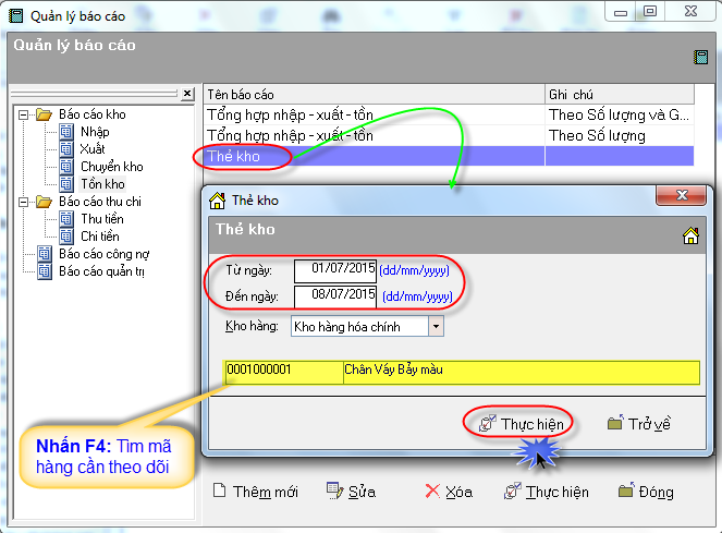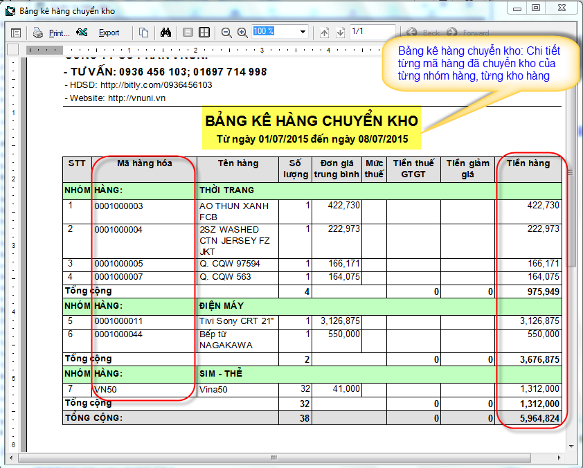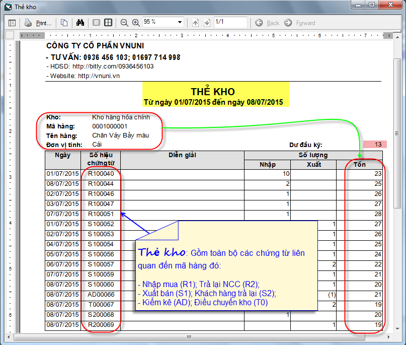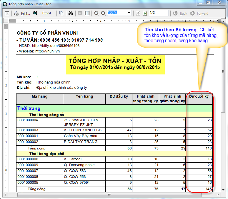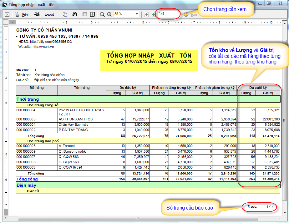 Báo cáo kho trong phần mềm bán hàng VNUNI