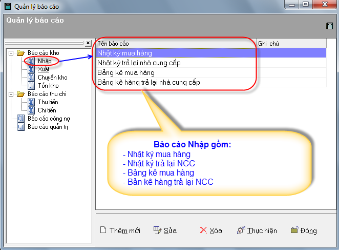 1. Báo cáo Nhập kho
