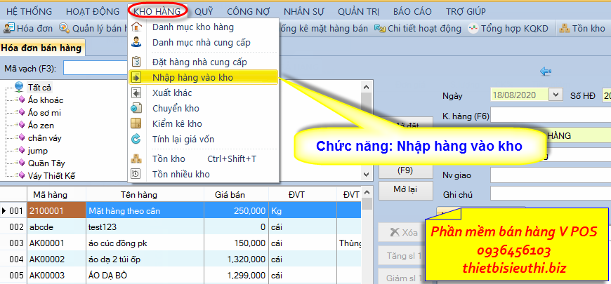 Cách Nhập hàng vào kho trong phần mềm bán hàng V POS