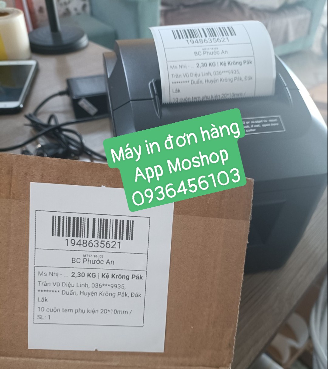 Ngoài in comment (bình luận) khi livestream trên Fanpage FB Moshop còn hỗ trợ in vận đơn gửi hàng qua máy in hóa đơn K80 (In trực tiếp app MoShop, không in app GHTK - In app GHTK phải máy in tem 350BM