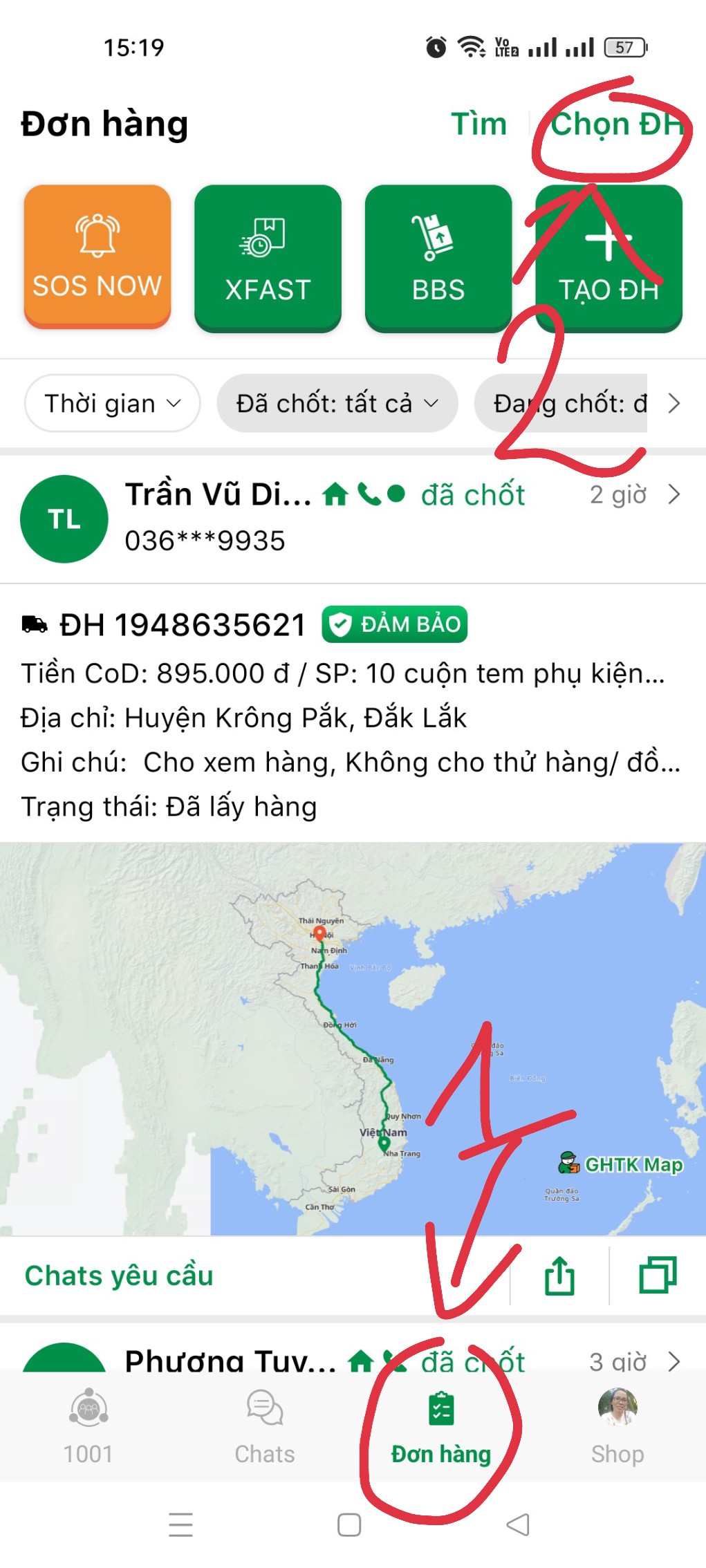 * Nếu cần in nhiều đơn chọn mục Đơn hàng -> Chọn ĐH