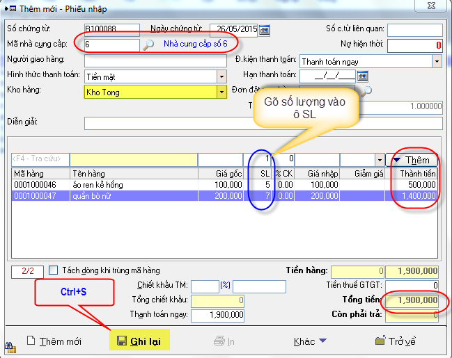 2.1 Nhập hàng trực tiếp trong phần mềm