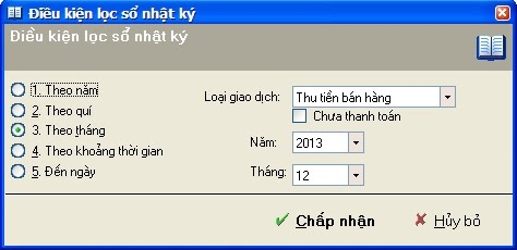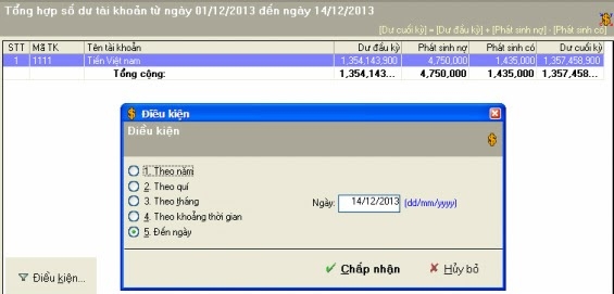 Chọn điều kiện: Khoảng thời gian muốn xem, sau đó kích vào chấp nhận