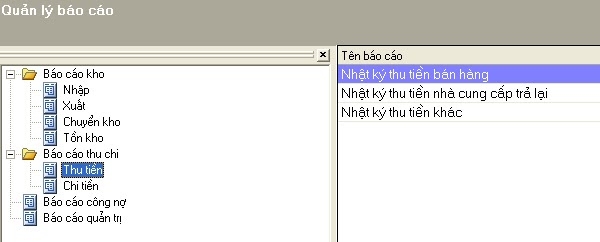 Nếu muốn xem riêng từng khoản thu (Thu tiền bán hàng, thu tiền trả lại NCC, thu khác), từng khoản chi (Chi tiền nhập hàng, chi tiền khách hàng trả lại, chi khác) thì có thể vào Báo cáo