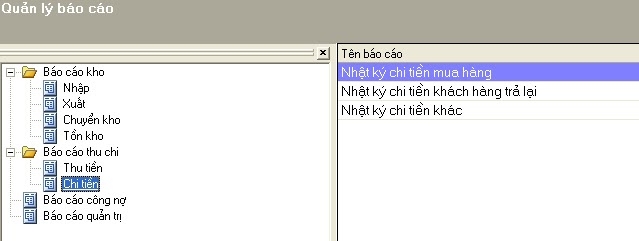 Báo cáo thu chi trong phần mềm bán hàng VNUNI