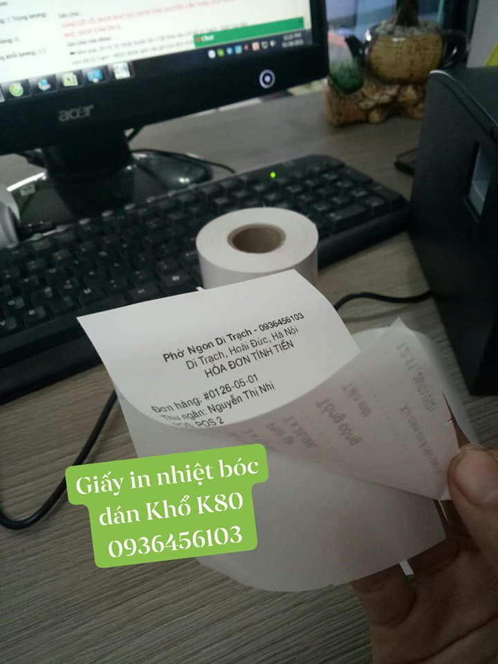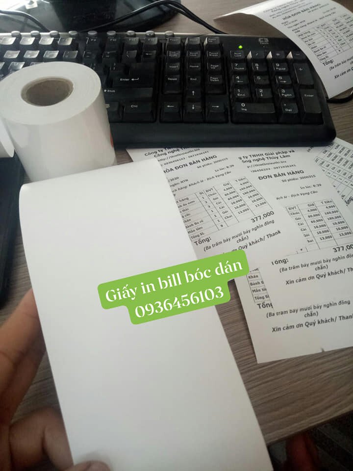 Giấy in hóa đơn bóc dán (Decal nhiệt liên tục) khổ K80 bóc dán được, khác với các loại giấy in hóa đơn nhiệt thường là không bóc dán được.