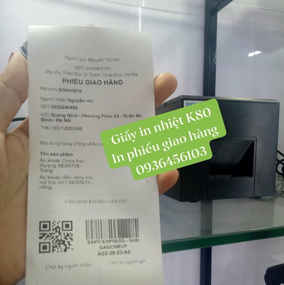 Giấy in phiếu giao hàng Sapo bóc dán (Decal nhiệt liên tục) khổ K80