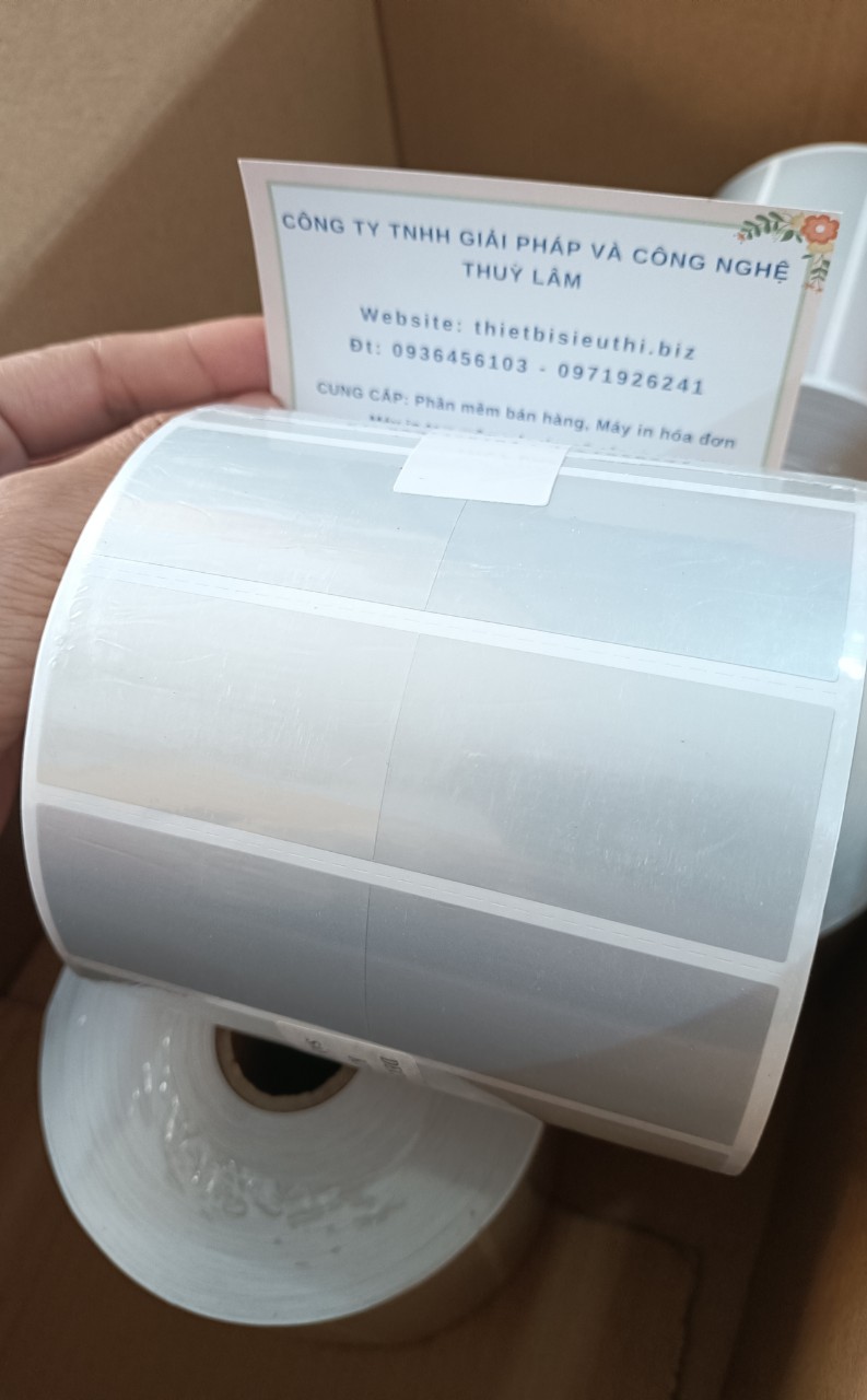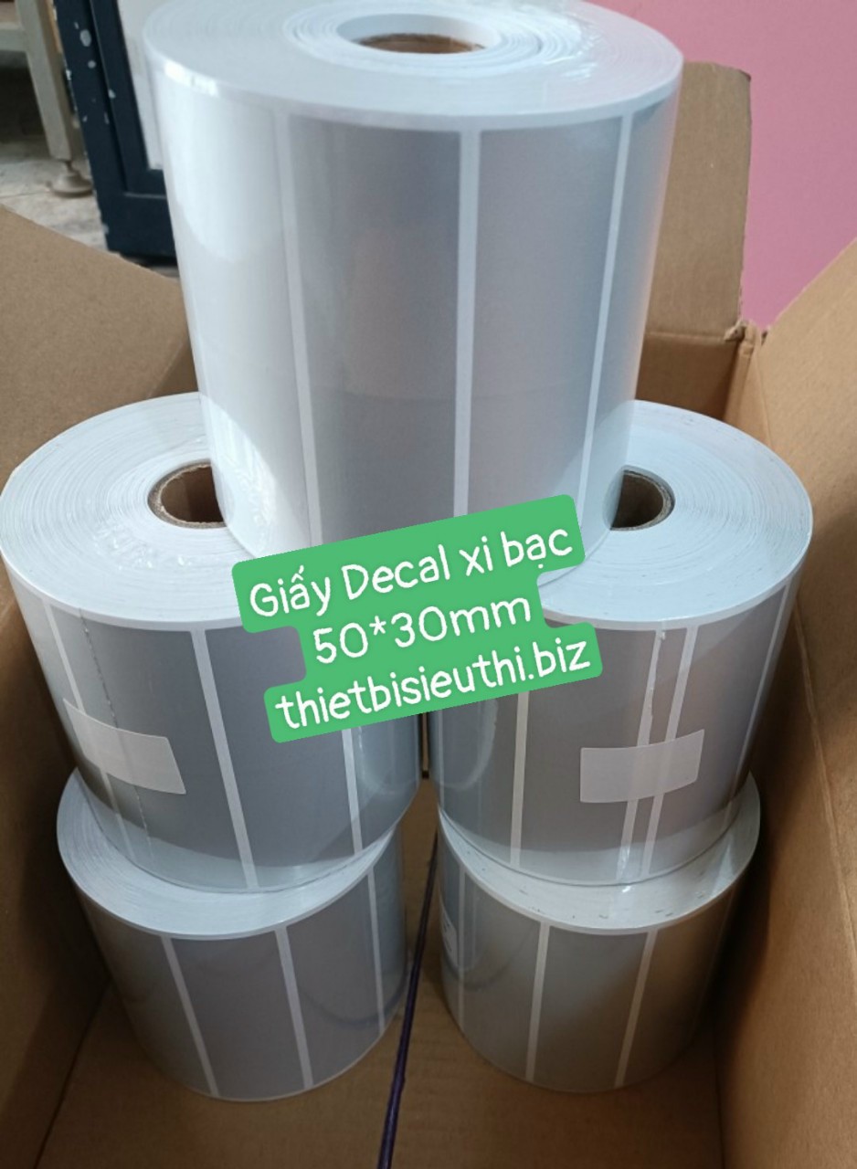 Giấy in tem decal xi bạc 50*30mm khổ 2 tem cuộn 50m