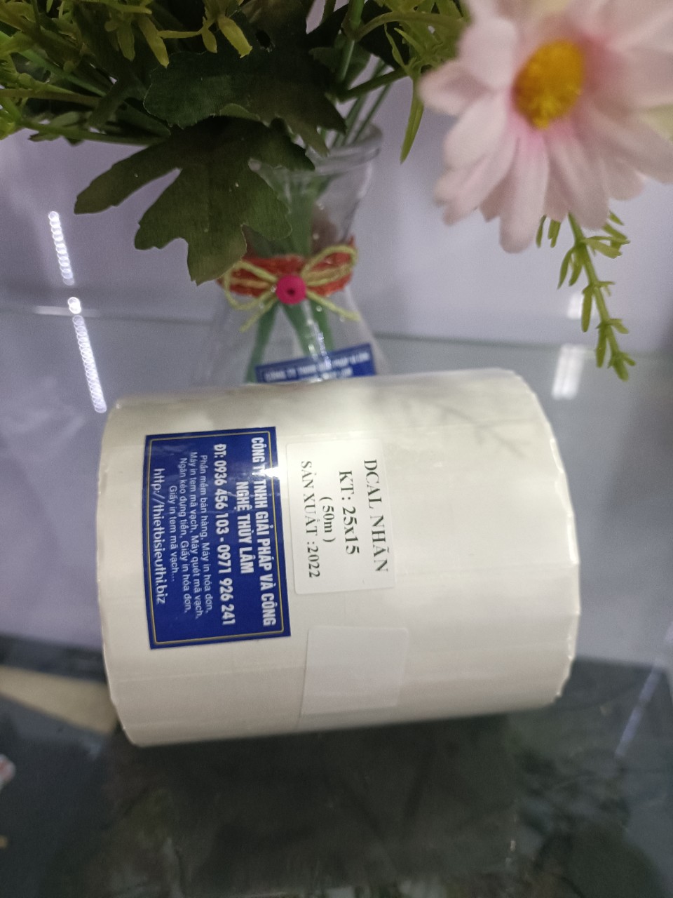 Giấy in tem mã vạch 25*15mm khổ 4 tem/1 hàng cuộn 50m