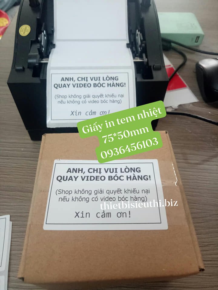 Giấy in tem mã vạch nhiệt khổ 75*50mm là giấy decal nhiệt: In xong bóc dán lên gói hàng. Một cuộn dài 30m, dùng cho các máy in mã vạch nhiệt ko sử dụng ruy băng mực.