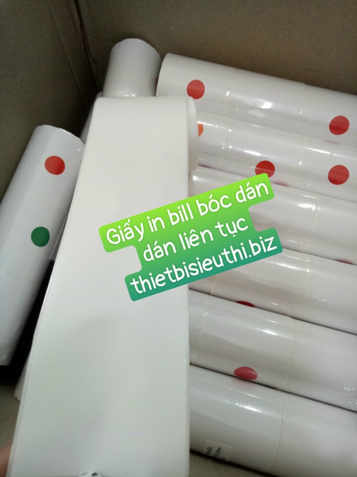 Ngoài khổ giấy thường còn có giấy bóc dán để có thể in đơn ship cod cho khách qua phần mềm chốt đơn. Giấy bóc dán liên tục khổ 8cm.