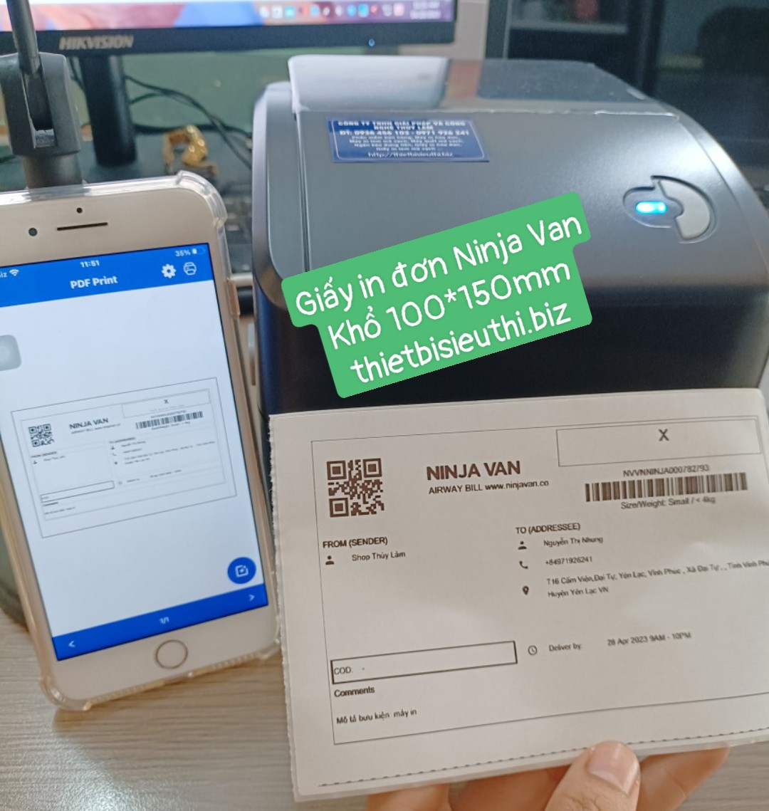 Máy in tem đơn hàng vận chuyển Ninja Van hay sử dụng khổ giấy A6 ngang 10cm cao 15cm. 1 tệp tầm 325 tờ