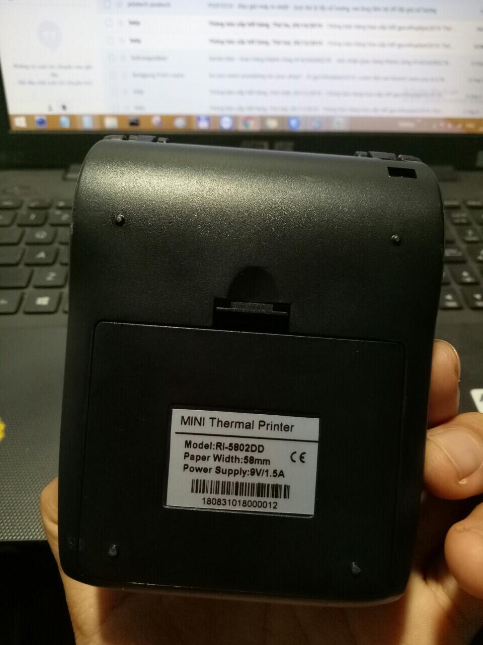 Máy in hóa đơn Bluetooth RI 5802DD (Máy in hóa đơn không dây RI 5802DD): Là loại máy in di động cầm tay (máy in nhiệt cầm tay) khổ 58mm. Kết nối Bluethooth với điện thoại, có dây usb kết nối với máy tính. Sử dụng khổ giấy 58mm, đường kính cuộn giấy 38 mm. Máy có thiết kế nhỏ gọn hợp thời trang phong cách hiện đại và đầy tính chuyên nghiệp khả năng làm việc rất hiệu quả. RI 5802DD là người bạn đồng hành đầy lý tưởng và chuyên nghiệp cho các cửa hàng, có thể in với chất lượng in chuẩn xác