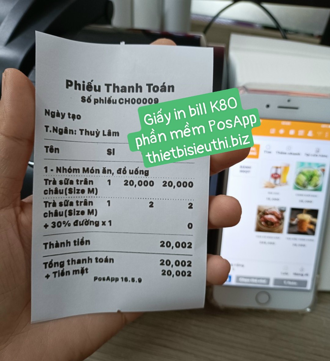 Máy in hóa đơn kết nối điện thoại qua app PosApp