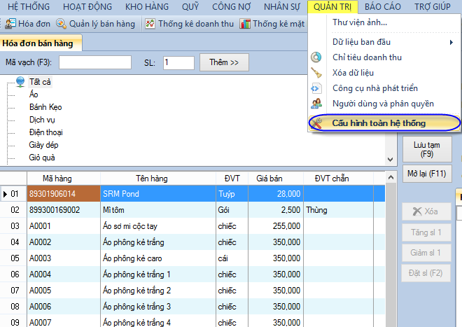 Vào mục Quản trị -> Cấu hình toàn hệ thống