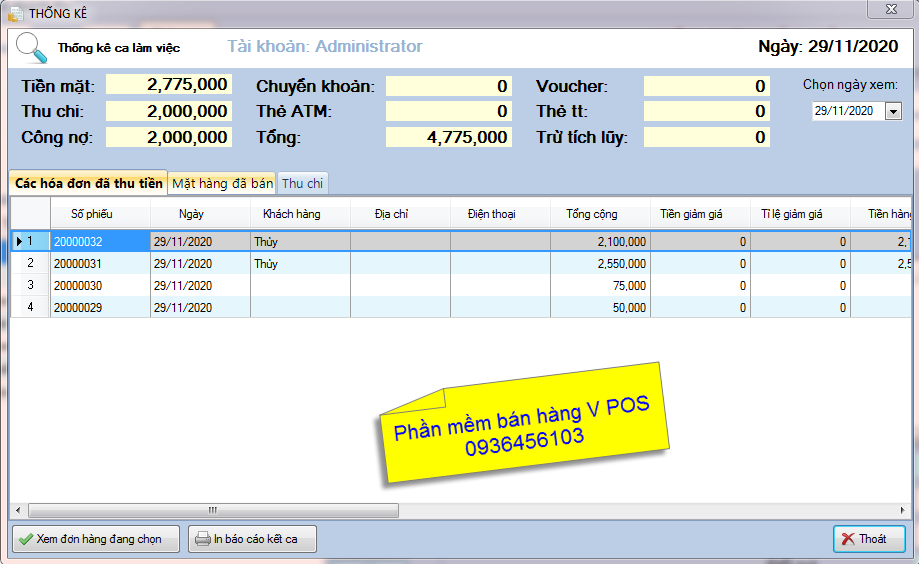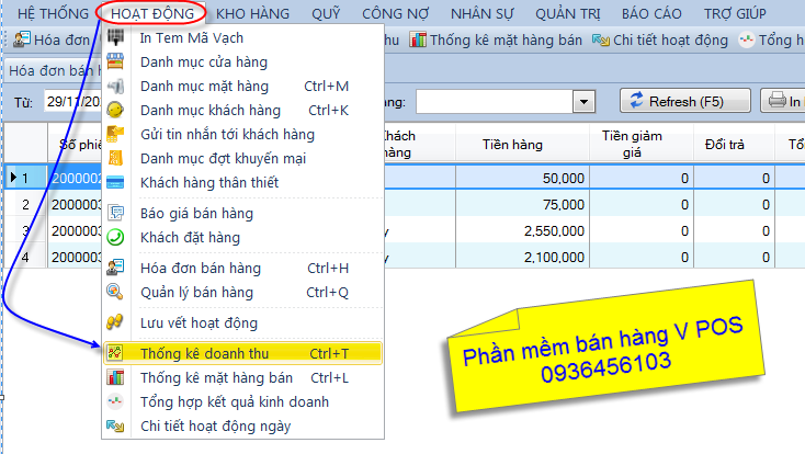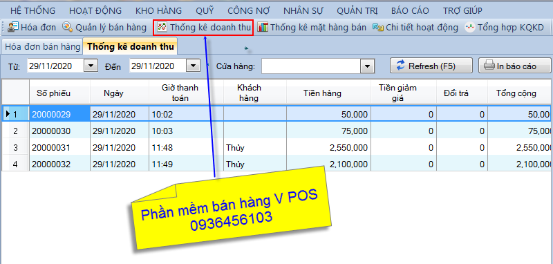 Thống kê doanh thu trong phần mềm bán hàng V POS